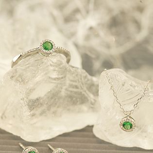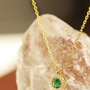 ყელსაბამი:სინჯი:750წონა: 1,50ბრილიანტი: 0,04 ct G VS 16ზურმუხტი:0,13 ct