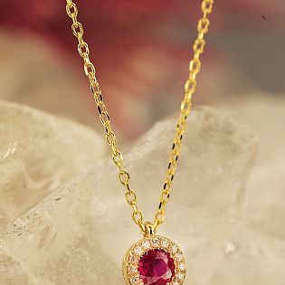 ყელსაბამი:სინჯი: 750წონა: 1,47ბრილიანტი: 0.04 CT G VSლალი: 0.16 CT