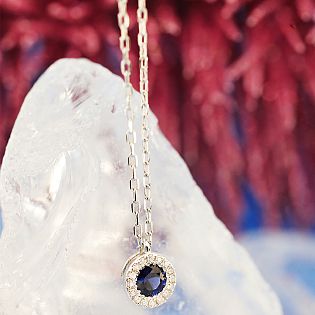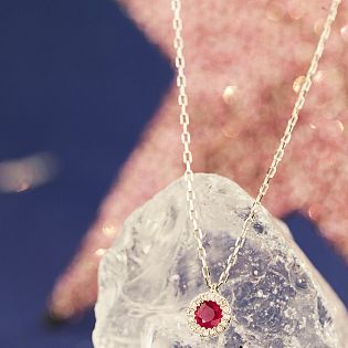 ყელსაბამი:სინჯი:750წონა:1.40ბრილიანტი:0.04 ct G VS16ლალი:0.21 ct