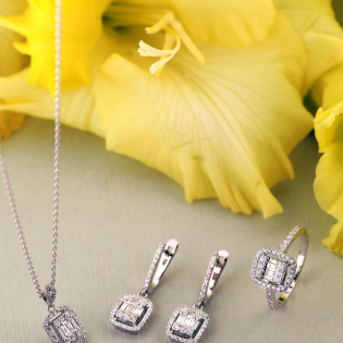 ბეჭედი:სინჯი: 750წონა: 2,30ბრილიანტი: 0,06 CT G VS 28|ლალი: 0.19 CTსაყურე:სინჯი: 750წონა: 1.77ბრილიანტი: 0,07 CT G VS 32ლალი: 0.44 CTყელსაბამი:სინჯი: 750წონა: 1,47ბრილიანტი: 0.04 CT G VSლალი: 0.16 CT