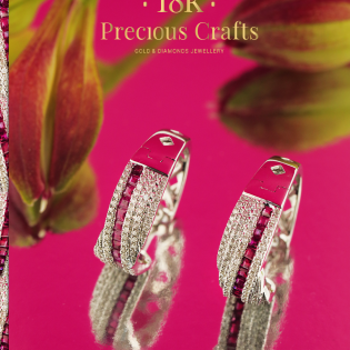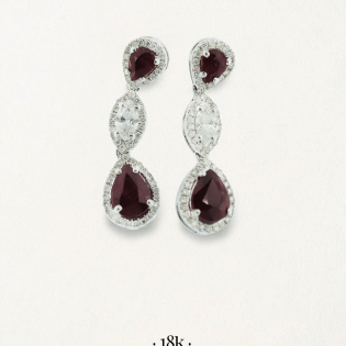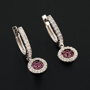 თეთრი ოქროს საყურე 0,79 კარატი ბრილიანტი და ლალის თვლებით