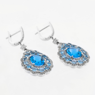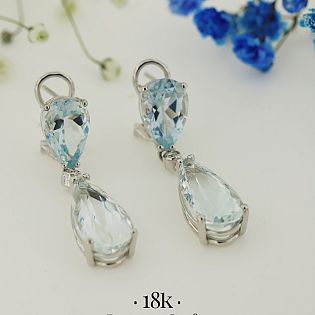 თეთრი ოქროს საყურე 0,64 კარატი ბრილიანტი და ტოპაზის თვლებით