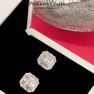 თეთრი ოქროს საყურე 0,93 კარატი ბრილიანტის თვლებით