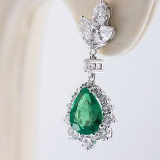 თეთრი ოქროს გრამიანი საყურე 2,03 კარატი ბრილიანტი და ზურმუხტის თვლებით