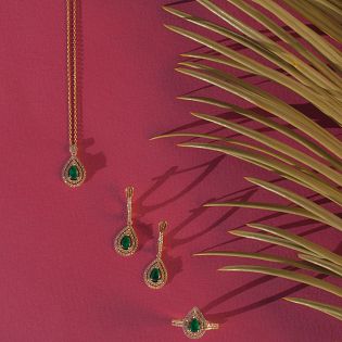 ყვითელი ოქროს საყურე 0,48 კარატი ბრილიანტისა და ზურმუხტის თვლებით