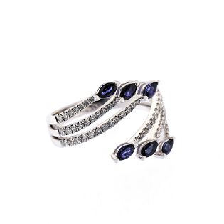 თეთრი ოქროს ბეჭედი 0,43 კარატი ბრილიანტი და საფირის თვლებით