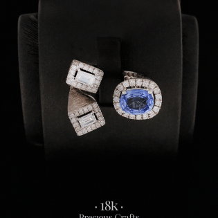 თეთრი ოქროს ბეჭედი 1,7 კარატი საფირისა და 0,89 კარატი ბრილიანტის თვლებით