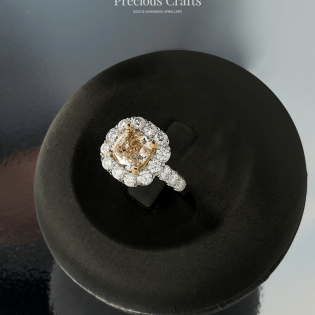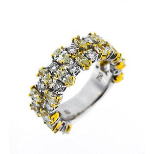 თეთრი ოქროს ბეჭედი 2,07 კარატი ყვითელი ბრილიანტი და 1,37 კარატი თეთრი ბრილიანტის თვლებით