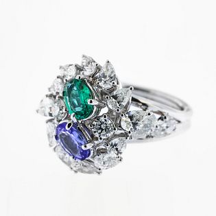 თეთრი ოქრო ბეჭედი 2,99 კარატი ბრილიანტის ზურმუხტისა და ტამზანიტის თვლებით