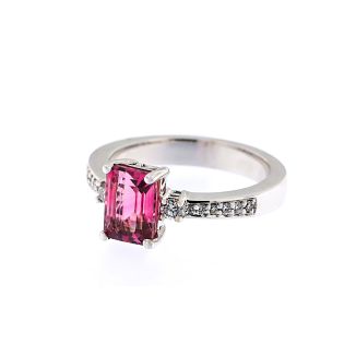 თეთრი ოქროს ბეჭედი 1,27 კარატი ბრილიანტი და საფირის 1,67 ტურმალინის თვლებით