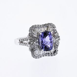 თეთრი ოქროს ბეჭედი 1 კარატი ბრილიანტი და 1,15 კარატი ტანზანიტის თვლებით