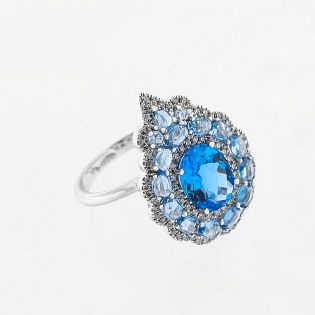 თეთრი ოქროს ბეჭედი 2,24 კარატი ბრილიანტი და ტოპაზის თვლებით