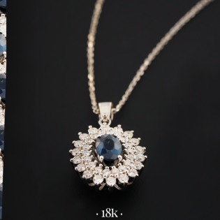 თეთრი ოქროს ყელსაბამი 0,04 კარატი ბრილიანტი და კარატი საფირის თვლებით
